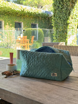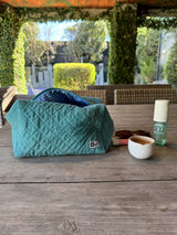 Taylor Teal Pouch, a cute cosmetics pouch the perfect size to fit all your essentials. She is a tasteful teal with a gingham lining. It's a pouch which can be used for your skincare, makeup, haircare and accessories. It is the perfect pouch to fill with all your essentials and pack in your carry on for a vacay, down to the beach or to a sleepover with your girls.