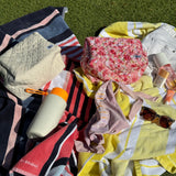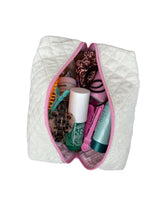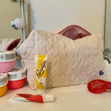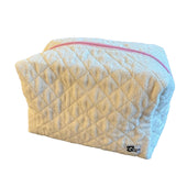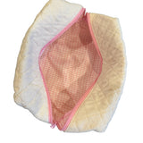Sabrina Beige pouch, a cute, simple cosmetics pouch the perfect size to fit all your essentials. She is a simplistic beige terry cloth with a gingham lining which can be used for your skincare, makeup, haircare and accessories. It is the perfect pouch to fil with all your essentials and pack in your carry on for a vacay, down to the beach or to a sleepover with your girls.
